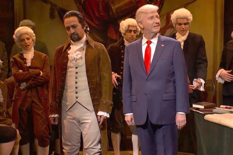 Lin-Manuel Miranda dusted off his colonial garb and rapping skills for a surprise Saturday Night Live cameo this weekend, but because of a certain American president, the Hamilton scribe was immediately silenced mid-song. The Timothée Chalamet–hosted episode looked deep into…