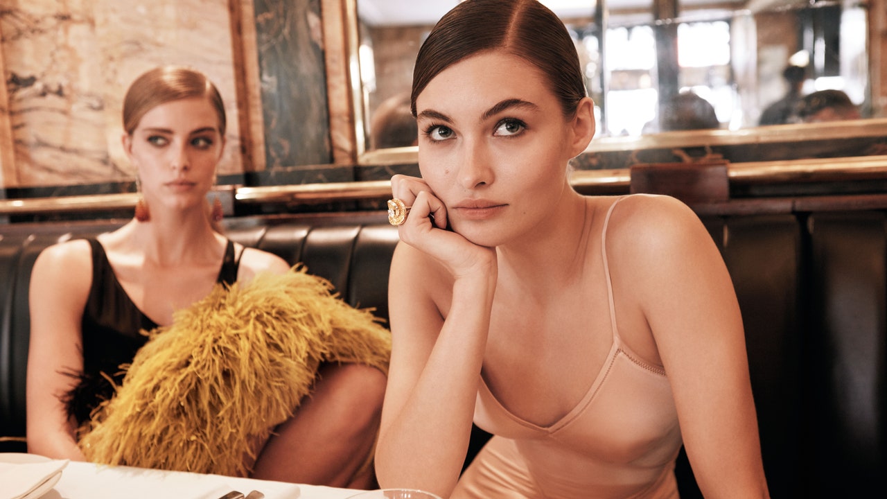 “When it comes to stones, champagne diamonds are having a moment. They have this warm, golden glow that feels luxurious but understated,” says Copenhagen-based jeweller Orit Elhanati, whose designs have a raw, sculptural appeal. “Salt-and-pepper diamonds will continue to appear in our work next year—there’s something so raw and real about their imperfections.” Minimalist master Rachel Boston agrees: “We have been getting a lot of requests for gold bands paired with very subtly colored diamonds, such as fancy yellow, pale grey, or champagne diamonds,” says the London-based jeweler. Back in June 2024, model Gabbriette went one step furtherwhen her partner, The 1975’s Matty Healy, proposed to her with a gothic black diamond encircled by pavé diamonds. “I personally love the tonal effect that subtly colored diamonds create…. extremely elegant, and more unusual than wearing a classic white diamond,” Boston adds. Look to the Cassian ring from her new antique diamond collection for inspiration.