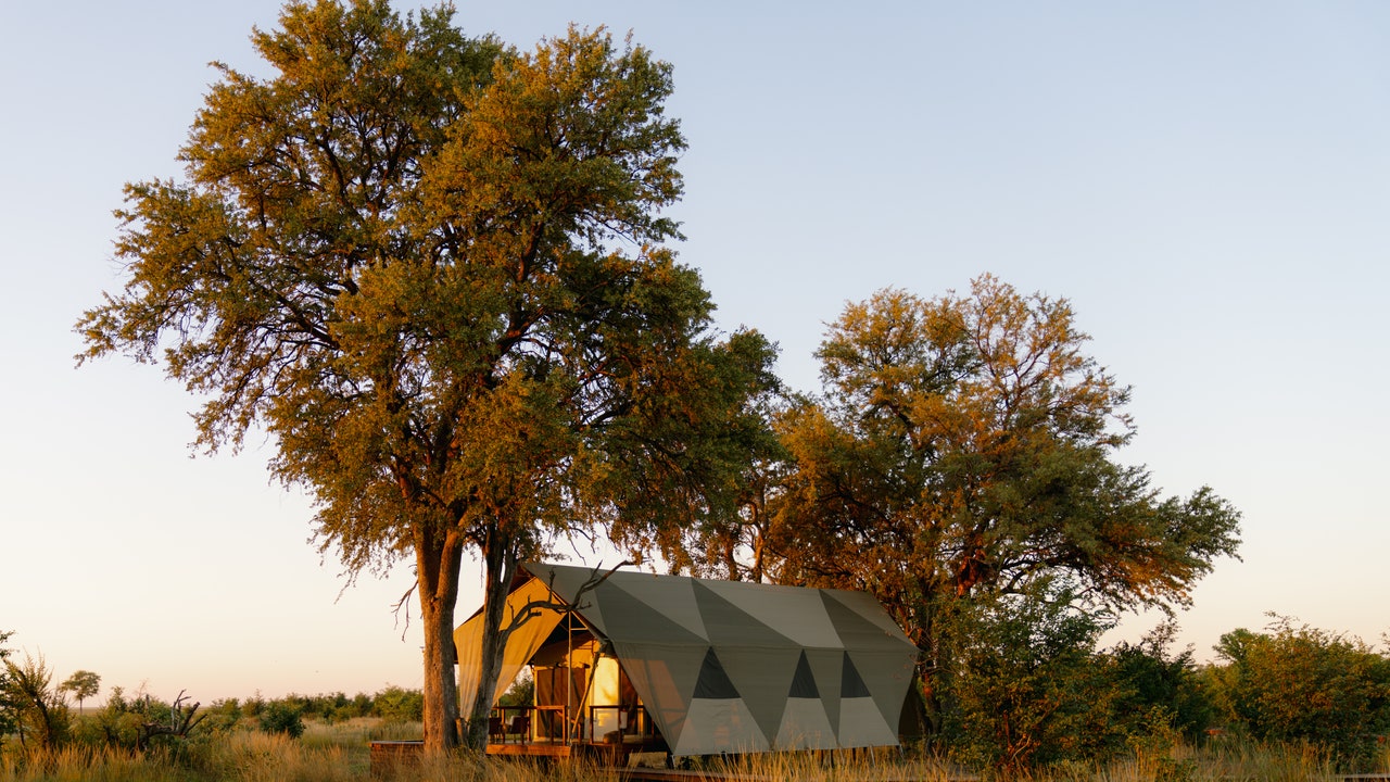 It’s also the setting for A partythe newest camp from Wildernessthe Botswana-based conservation and hospitality company with more than 60 camps and lodges scattered across eight countries. Their offering runs the gamut from the ultimate in bush luxury—whether the haute design canvas suites of Botswana’s Mombo, or the stylish thatched pods at Bisate Lodge for gorilla trekking in Rwanda—to more intrepid, authentic safari camps placed, quite literally, in the middle of nowhere. Mokete falls somewhere in the middle of those two poles, offering plenty of comfort while also existing in a previously untouched corner of the Botswanian wilds. (It’s the only camp within a 50,000-hectare radius, meaning you and the other guests—a number strictly capped at 18—are unlikely to even run into each other, let alone any other safari groups.)