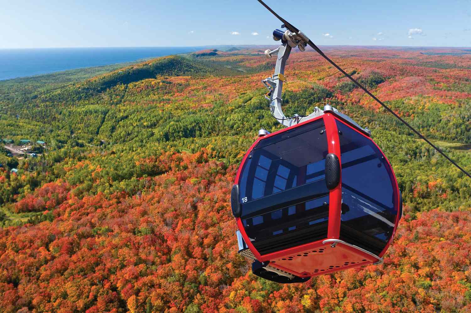 The ski area located in northern Minnesota is known for its fall colors as much as it is for its snow. Each autumn, the resort’s aerial Summit Express Gondola provides 365-degree views of the colors, along with sights of the Sawtooth Mountains and the dramatic coastline of Lake Superior. Occasional sightings of eagles, bears, pine martens, moose, and timber wolves from above add to the fun.