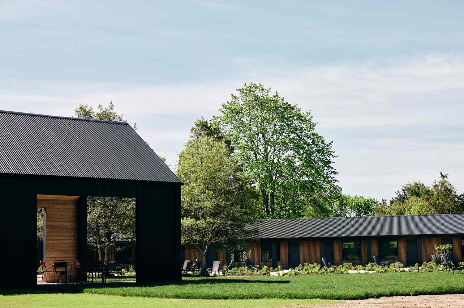 Newly built is a freestanding space called the Barn, an all-in-one reception, breakfast room, cafe, boutique, and lounge. The parking lot has also been relocated to a more unobtrusive spot, the old asphalt expanse transformed into 1.6 acres of perennial gardens with wildflowers and native grasses, designed by landscape architect Lauren Barry of Project Plant.