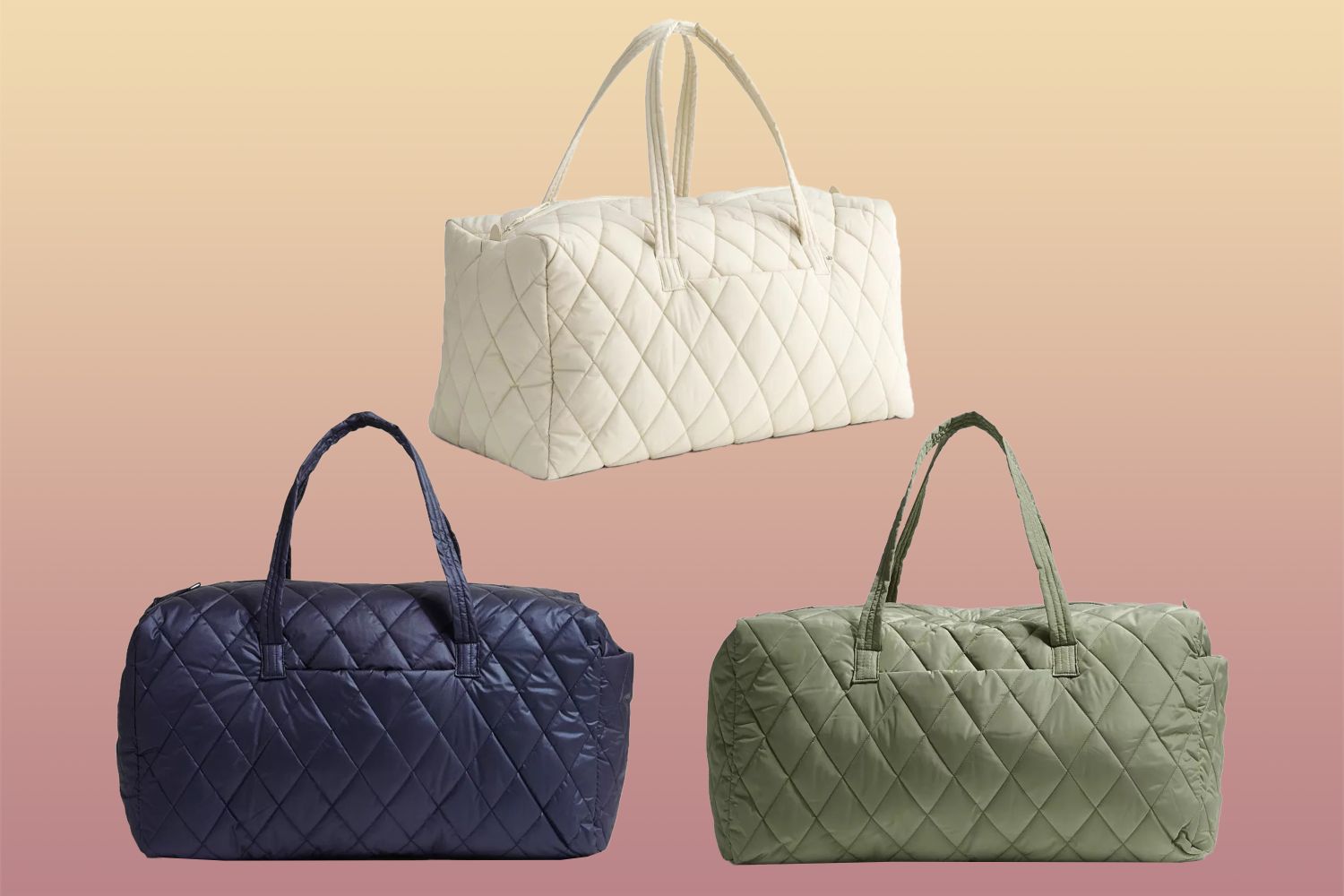 The quilted exterior makes the bag lightweight at just under 2 pounds, so it’s an easy option to tote around, whether you’re walking through an airport or train station. Plus, it offers a gentle padding and light layer of protection for your belongings. The flexible material also makes it a smart pick that easily fits in a packed car trunk during road trips or for squeezing into an overhead bin. When it’s not in use, the bag can be “rolled up and stored away easily,” according to a third reviewer. The weekender bag is available in six colors and patterns, including florals, strips, and solids like green, black, and navy. If stains or spills occur, the brand recommends spot cleaning the bag to remove them.