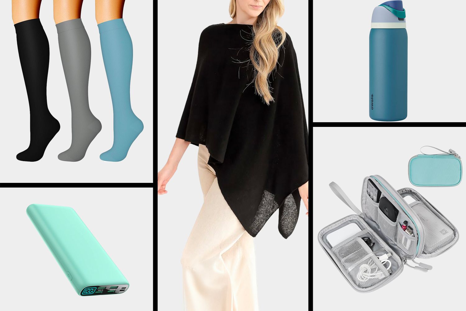 You might be on a long-haul or overnight flight, but that doesn’t mean you need to bring every comfort from home with you. Case in point: your go-to slippers. While they may technically fit in your personal item bag, you’re better off bringing a more packable pair of socks, ideally a pair that performs multiple functions. Compression socks keep your feet cozy and covered (as you should never go barefoot on a plane), and they help with stimulating circulation, leading to a reduction in discomfort and swelling.